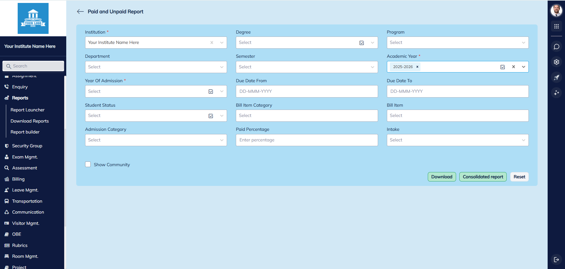 These reports enable administrators to evaluate the financial health of the institution, analyse fee collection patterns, and identify areas for improvement or optimisation.