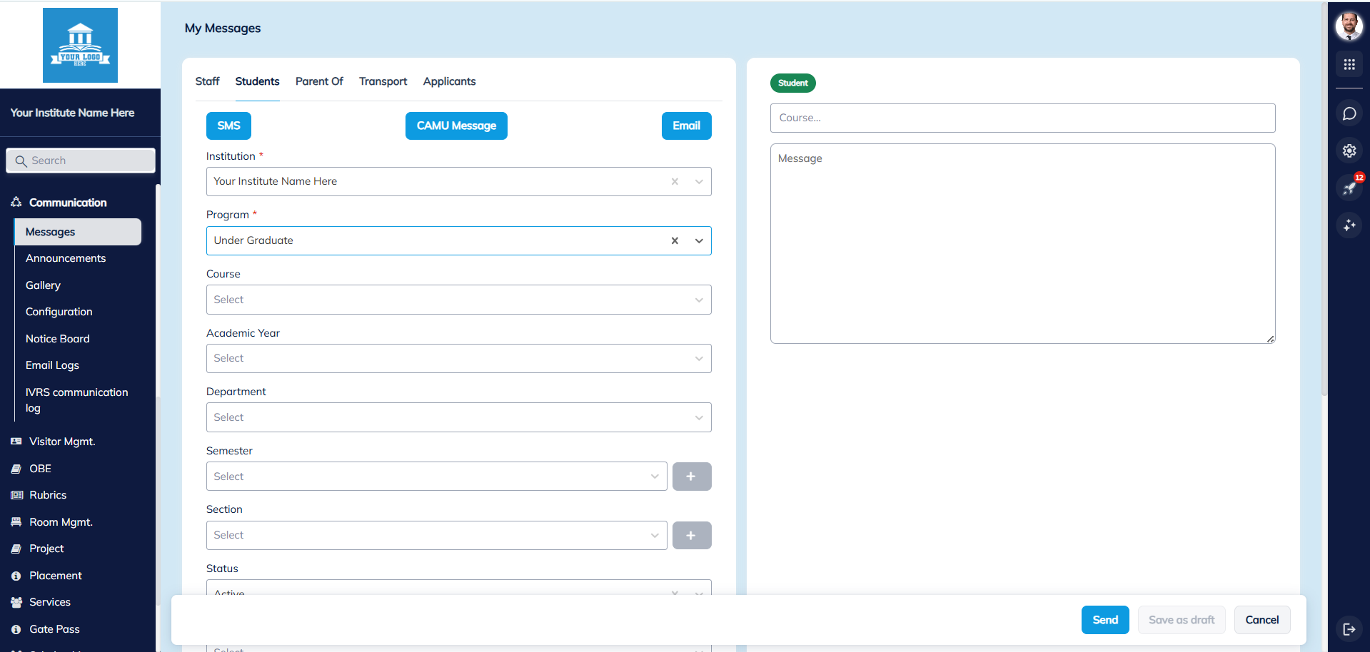 All-in-one platform combining Learning Management and Student Information Systems to streamline academic and administrative workflows.Educational Institutions worldwide are gearing up to meet new concepts such as Outcome-Based Education and the Choice-Based Credit System. At such a time, having an independent, unified LMS & SIS brings together teaching, learning, and student data management in one centralized platform. Designed for schools, colleges, and universities, it simplifies course delivery, attendance, grading, and communication between faculty, students, and administrators.
